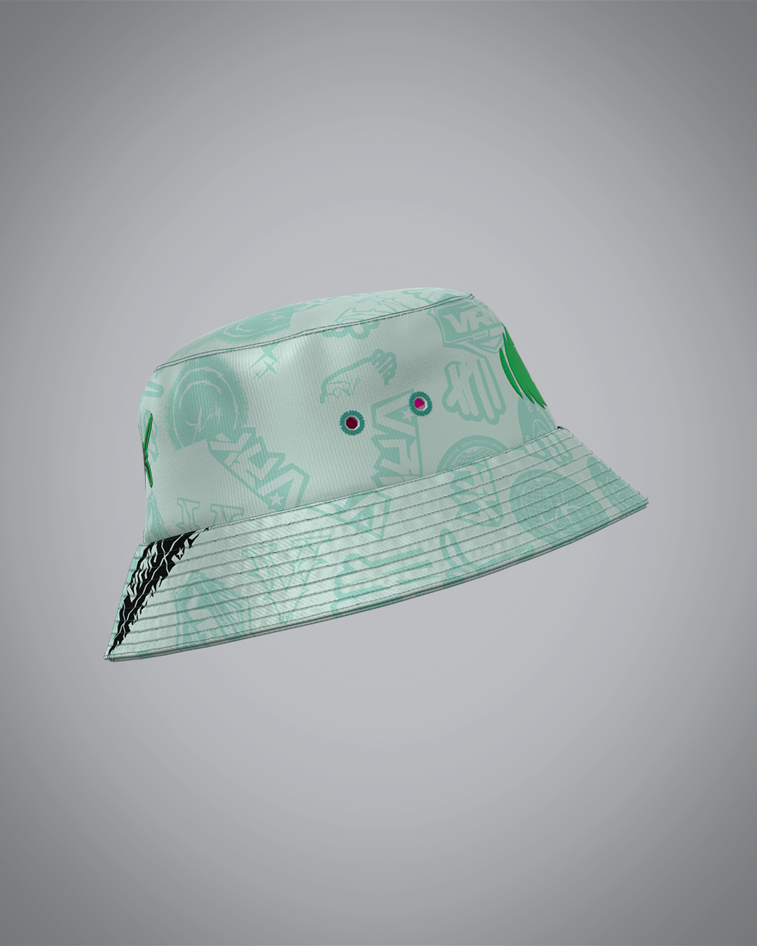 Le bob double face Vrunk allie style et fonctionnalité avec ses deux coloris complémentaires : une face rose coordonnée au maillot Chewing Gum et une face vert d'eau harmonieuse avec le maillot Mint Forest.