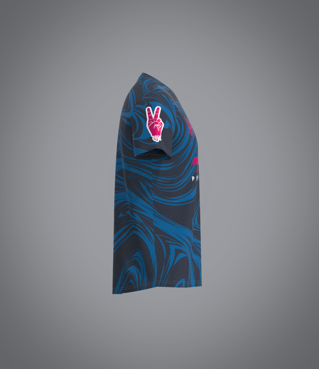 - Détails : Logos "VRUNK" et "VRK" en rose vif, apportant un contraste dynamique. Inscription "PERFORMANCE" sur le devant. Motif de main faisant le signe de la paix sur la manche.