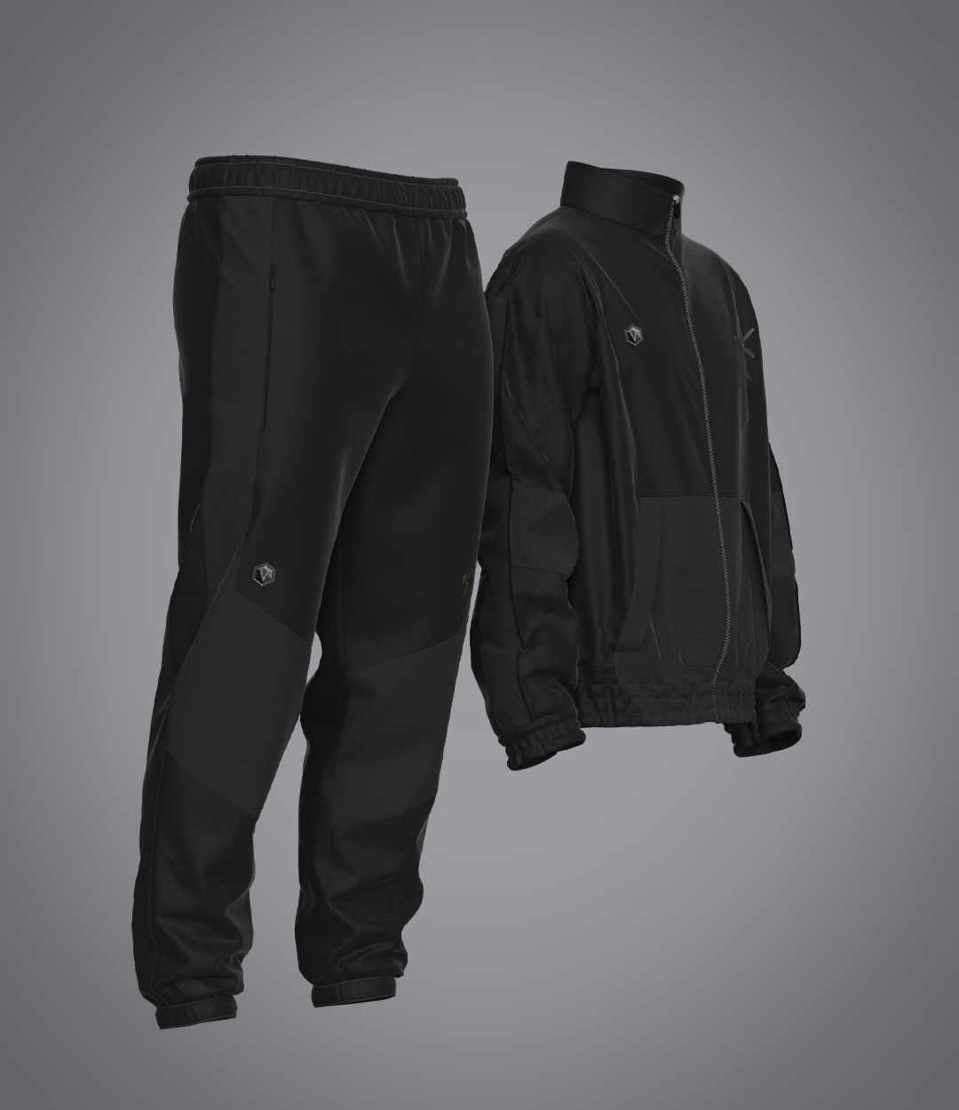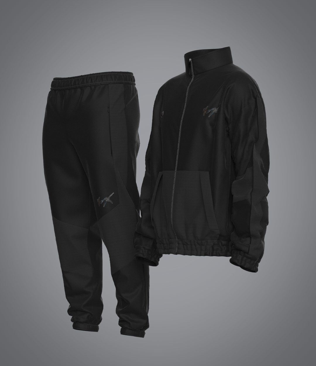 Le survêtement VRUNK Black Future associe le noir profond à des détails explosifs pour un look urbain et audacieux.
